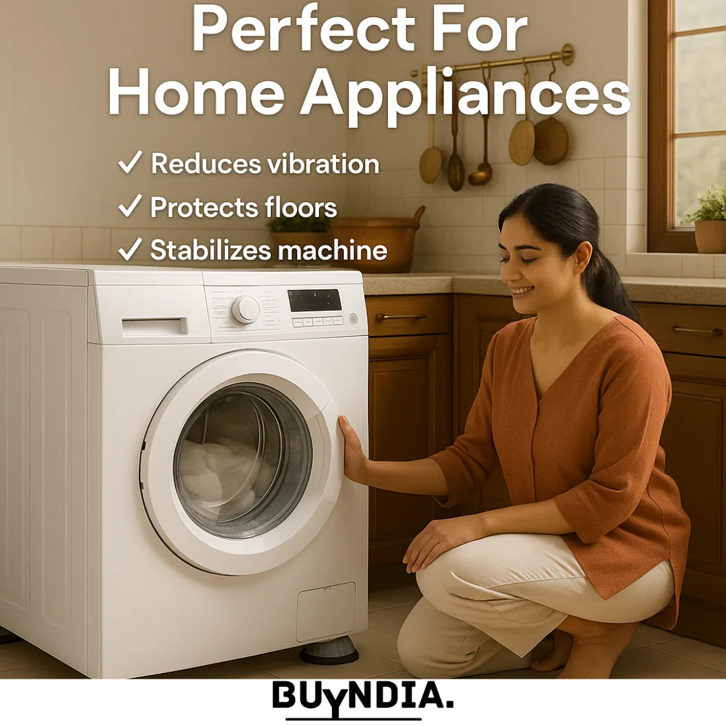 Priya Sharma, Uttar Pradesh ⭐⭐⭐⭐⭐ "These Anti-Vibration Washing Machine Pads are a total game-changer for my small apartment! Washing machine pehle slide ho jaati thi spin cycle mein, ab bilkul stable hai – no more noise waking up the kids. Heavy-duty rubber jaise car tyres ka, easy to place under legs. At Rs. 499 sale from Rs. 1,399, set of 4 mein full value – must have for busy moms like me! 😊"