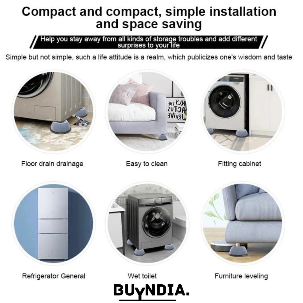 Ritu Verma, Maharashtra ⭐⭐⭐⭐⭐ "Bought this set for my top-load washer and it's amazing. No more walking across the room during wash, stable aur smooth run – even on tiled floors. Easy no-tool install, pack of 4 covers all legs perfectly. Half price pe Rs. 499 mein unbeatable, highly recommend for urban homes with noisy appliances!"